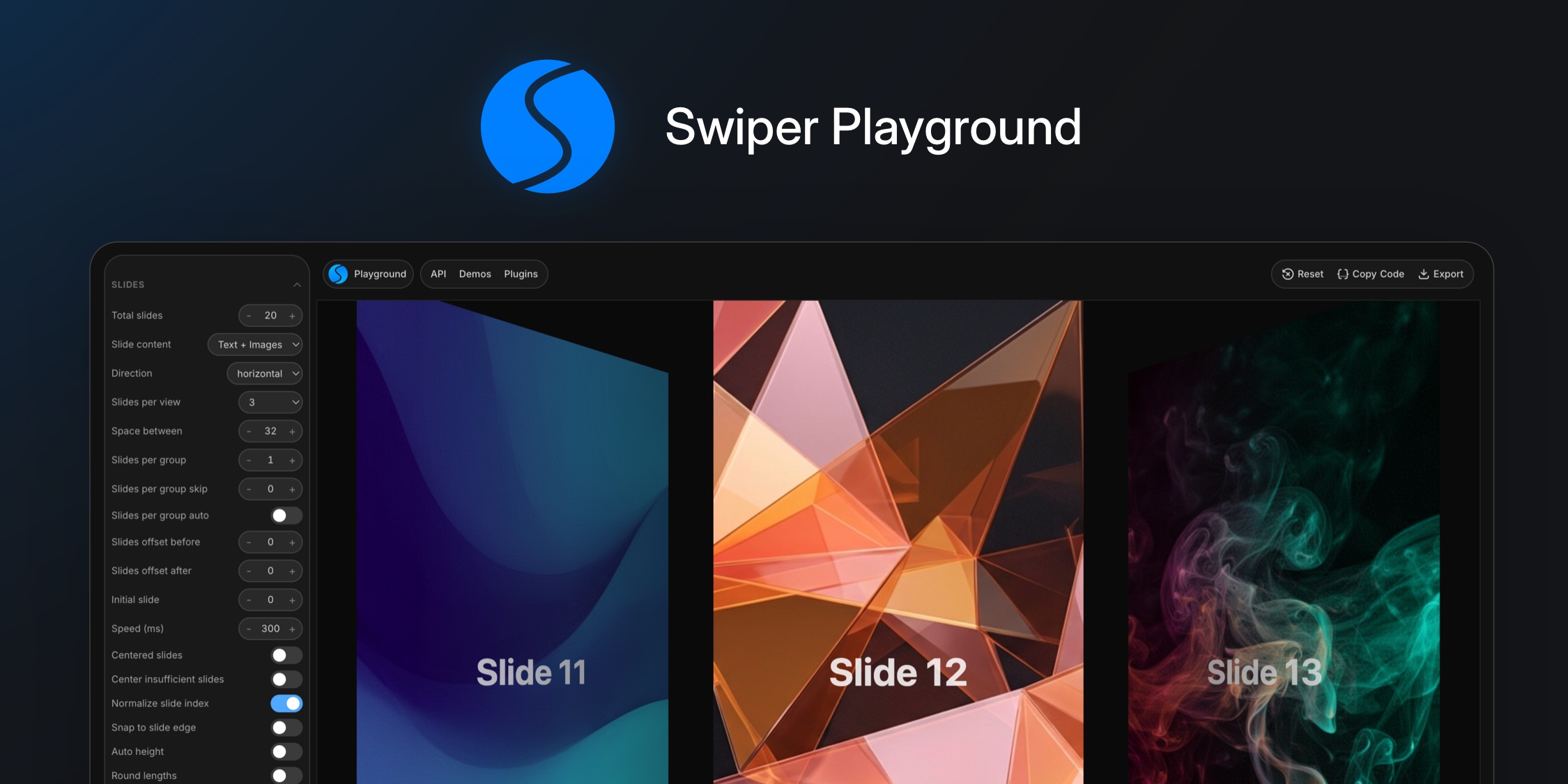 We're excited to introduce Swiper Playground - a free, interactive visual builder that lets you configure, preview, and generate Swiper code in real time, right in your browser. No setup, no installs, just open and play.